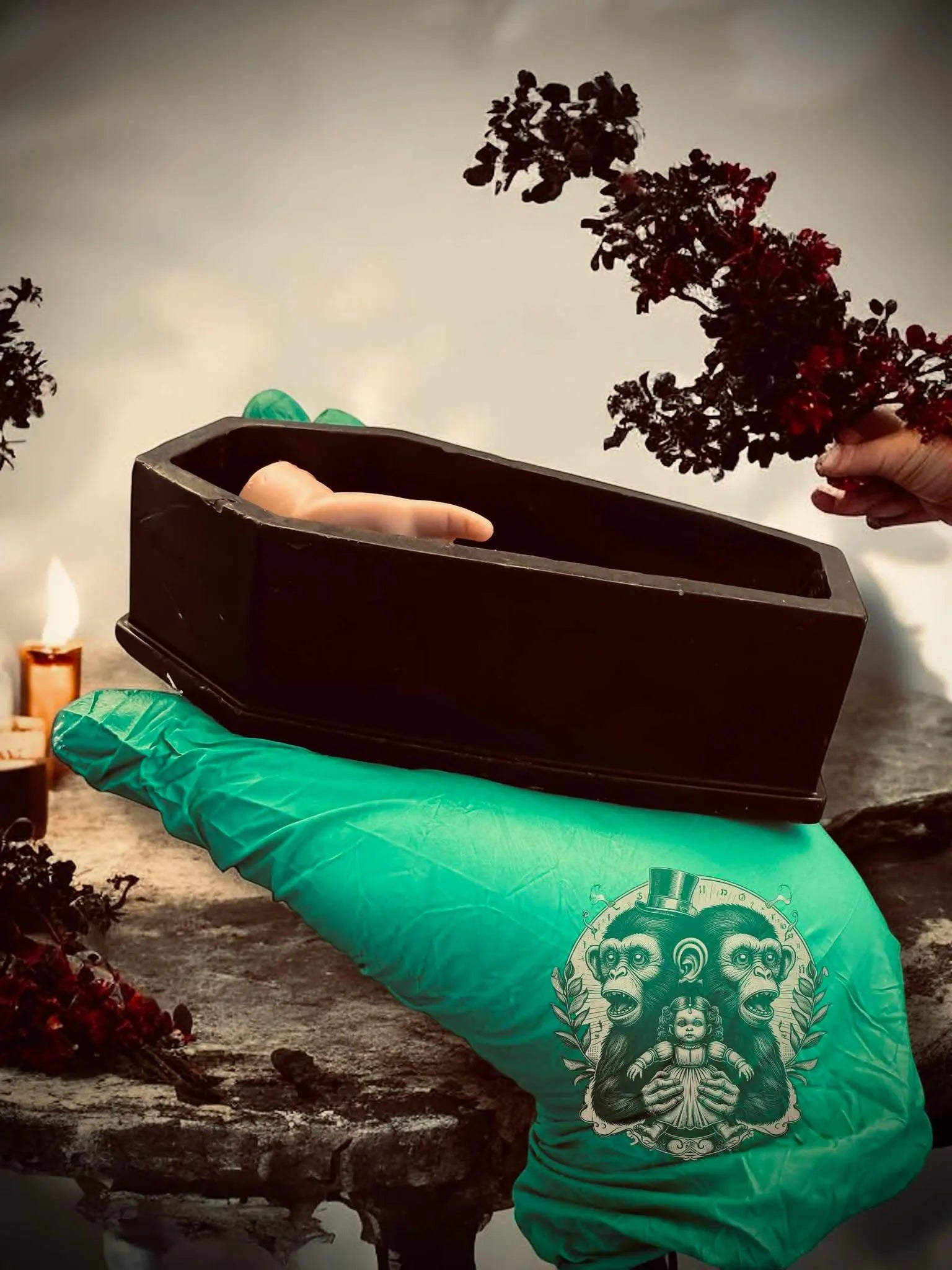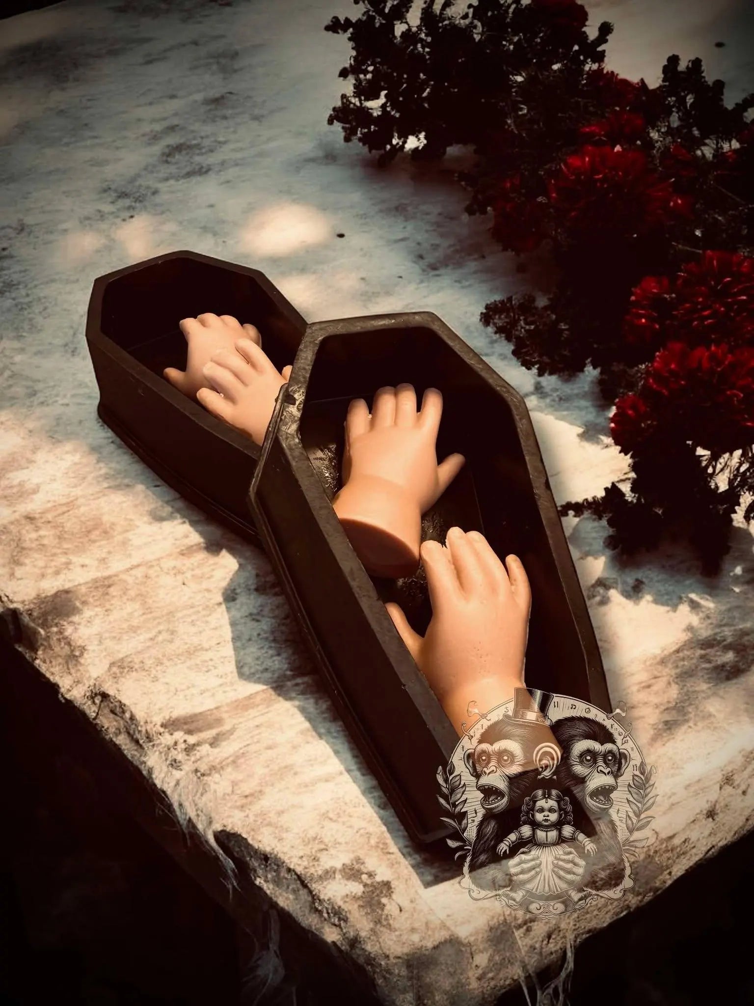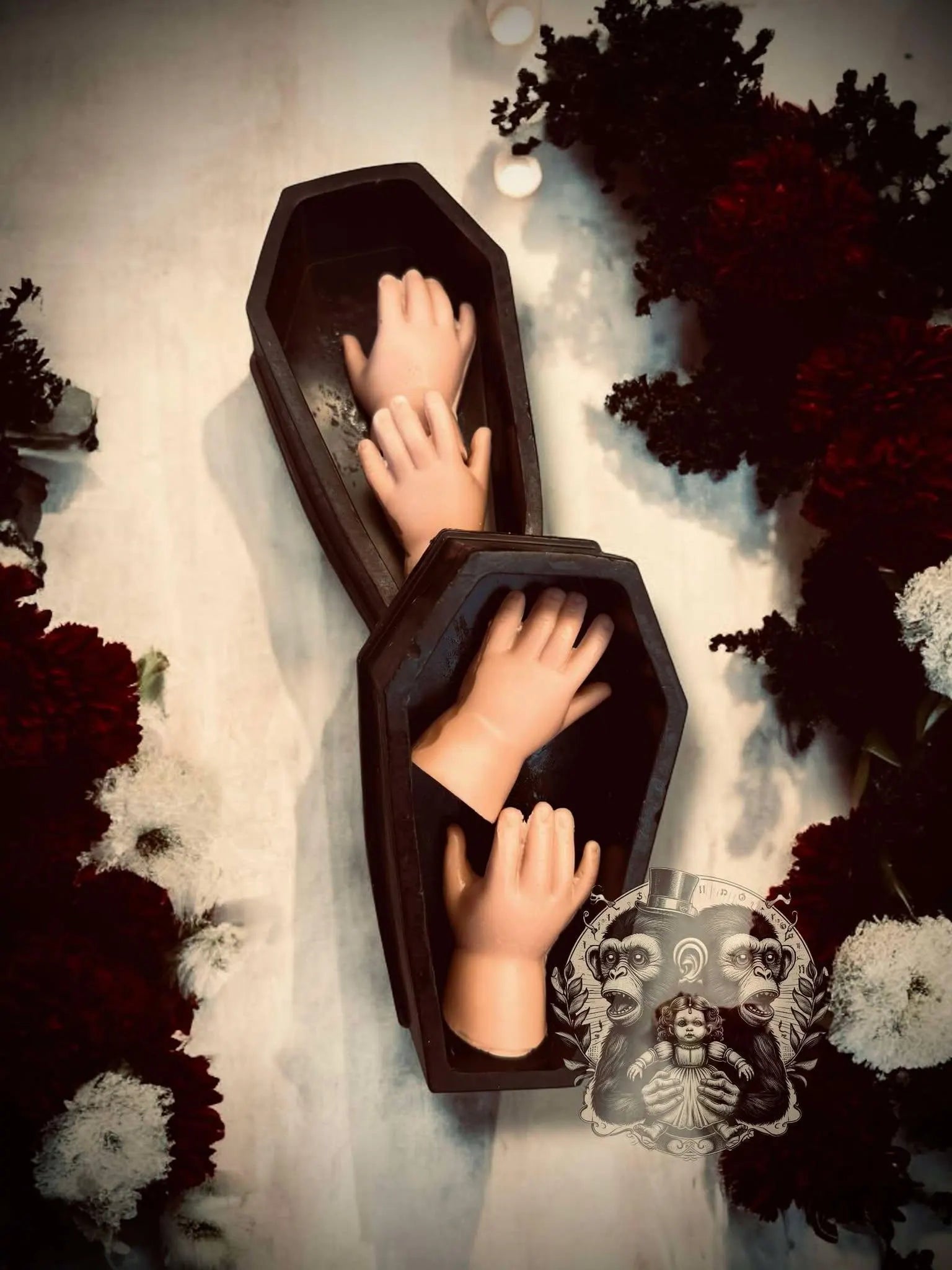 Get your hands on this set of these doll hands and their black coffin - all made of soap!