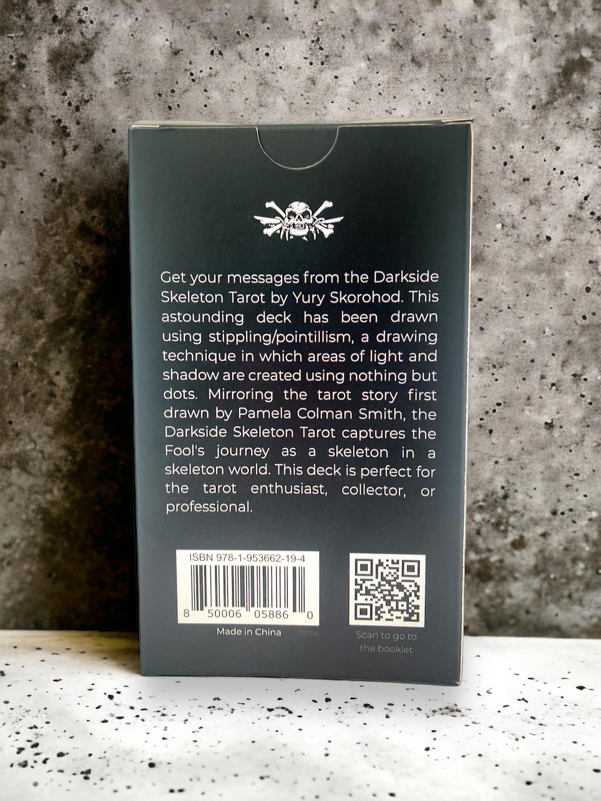 This deck is the result of our successful Kickstarter campaign and hard work by talented Yuri Skorohod. All characters are depicted as skeletons. This is the standard edition of the deck. * black and white print * black card edges * anti-scratch matte lamination * 78 cards * standard card size 2 3/4" x 4 3/4" (70 x 120mm) * thick 350 gsm art paper * electronic booklet (QR code on the back)