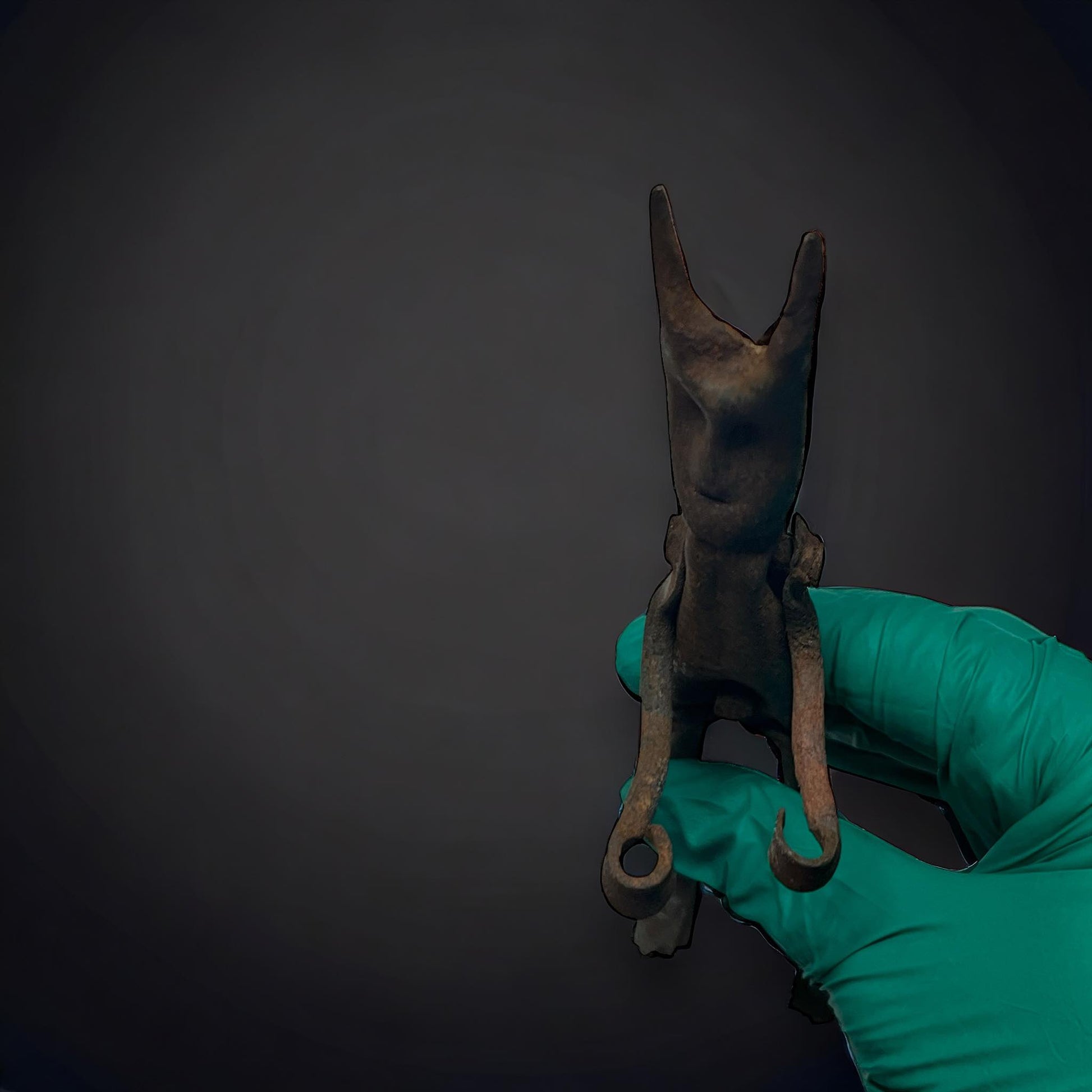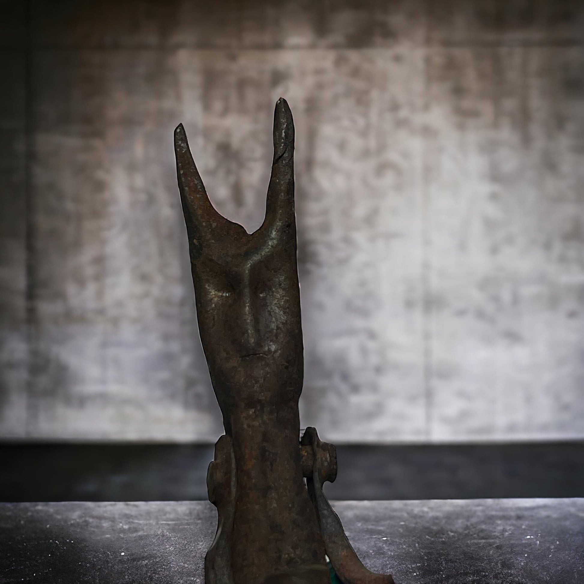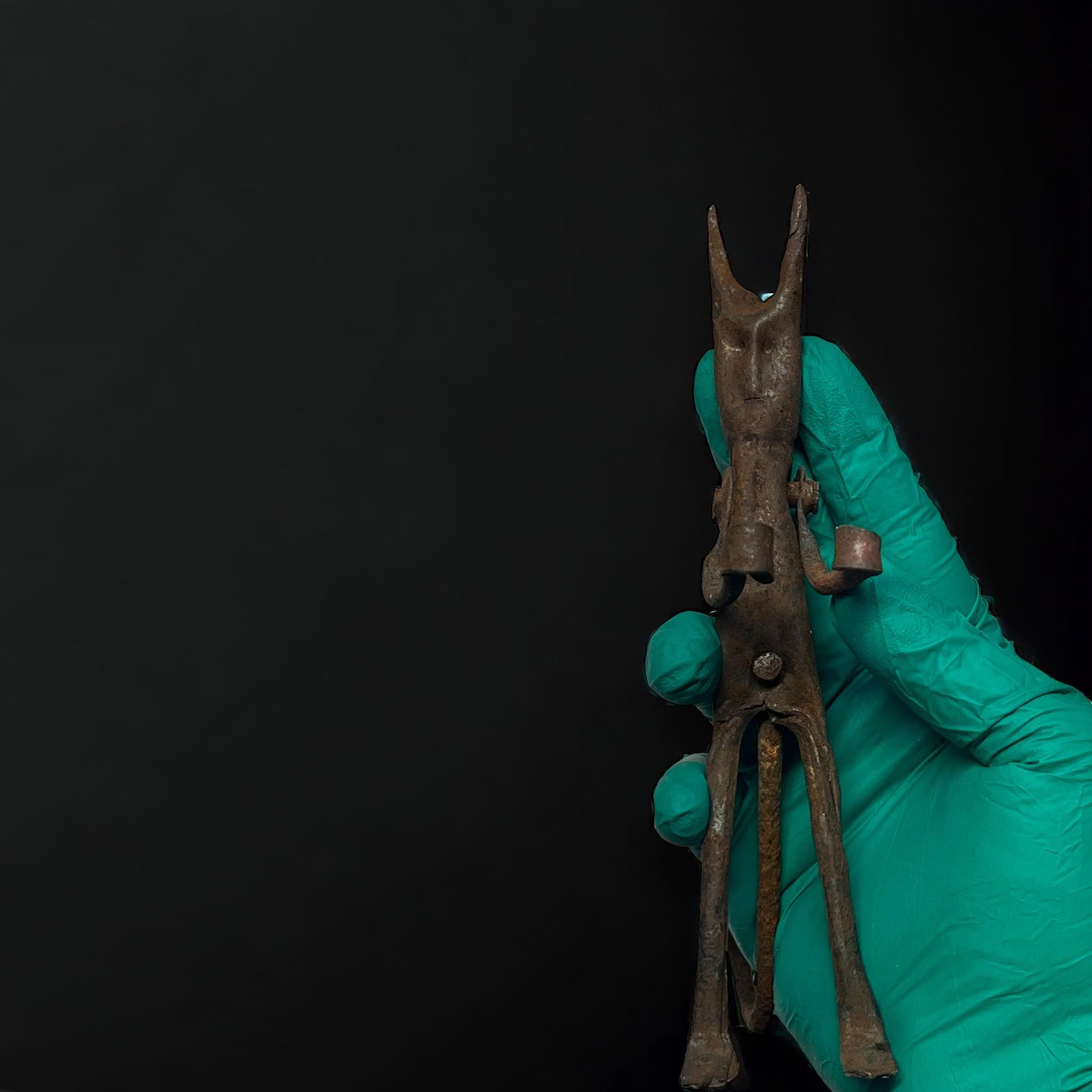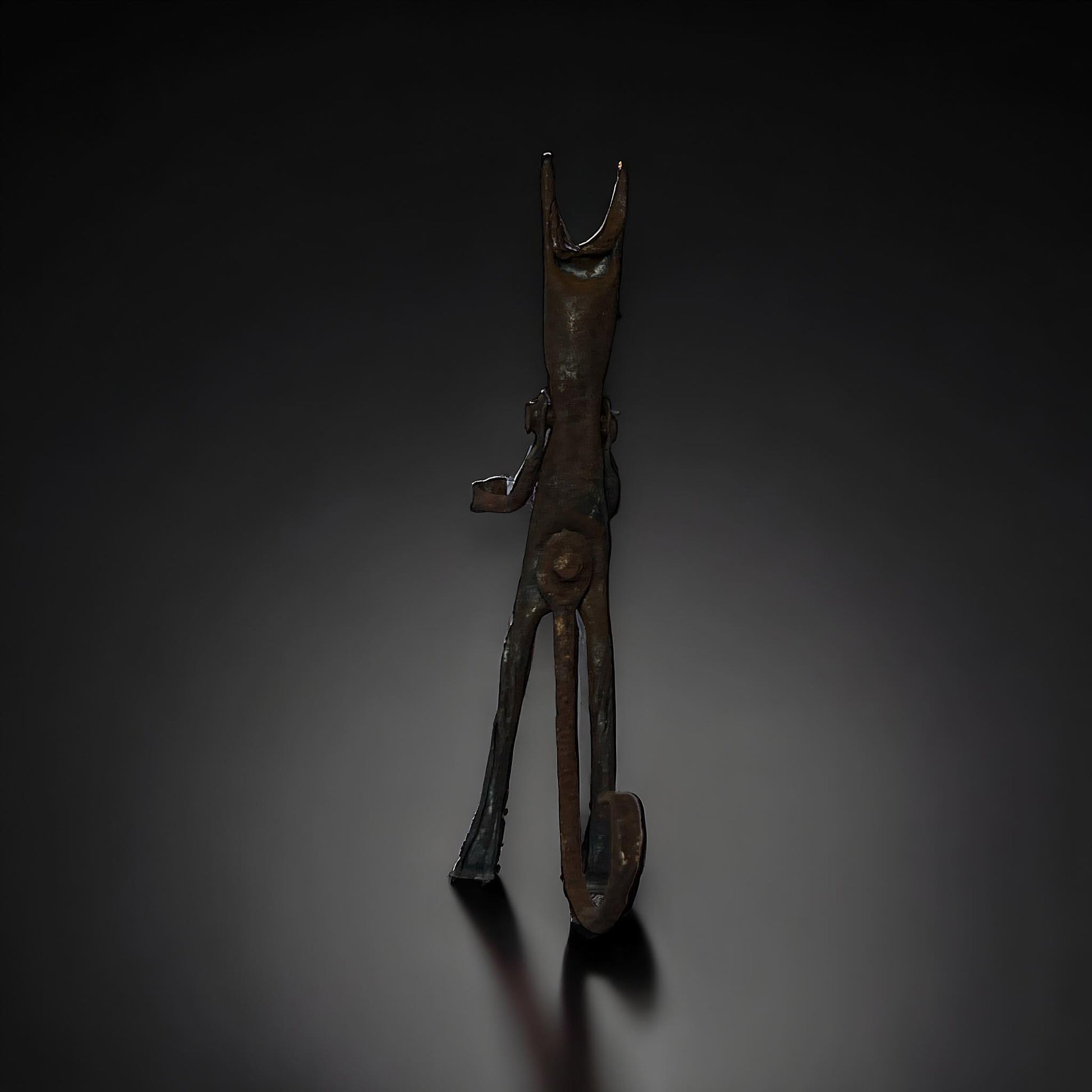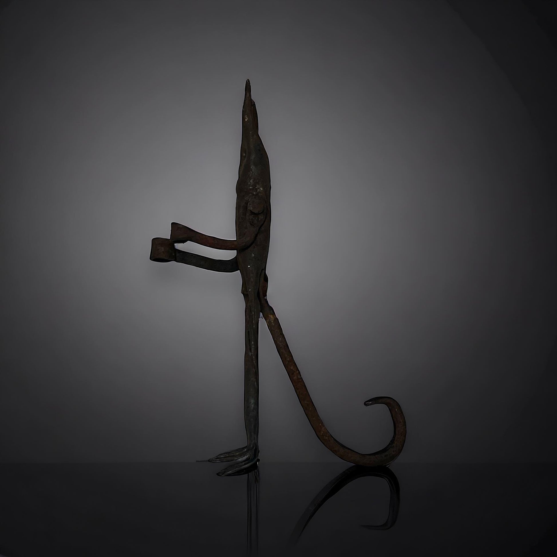 This 7" tall devil statue is made of old rusty metal. Featuring details and a striking design, this piece adds a touch of the occult to any space. Perfect for collectors or as a unique decoration, it's sure to be a conversation piece.