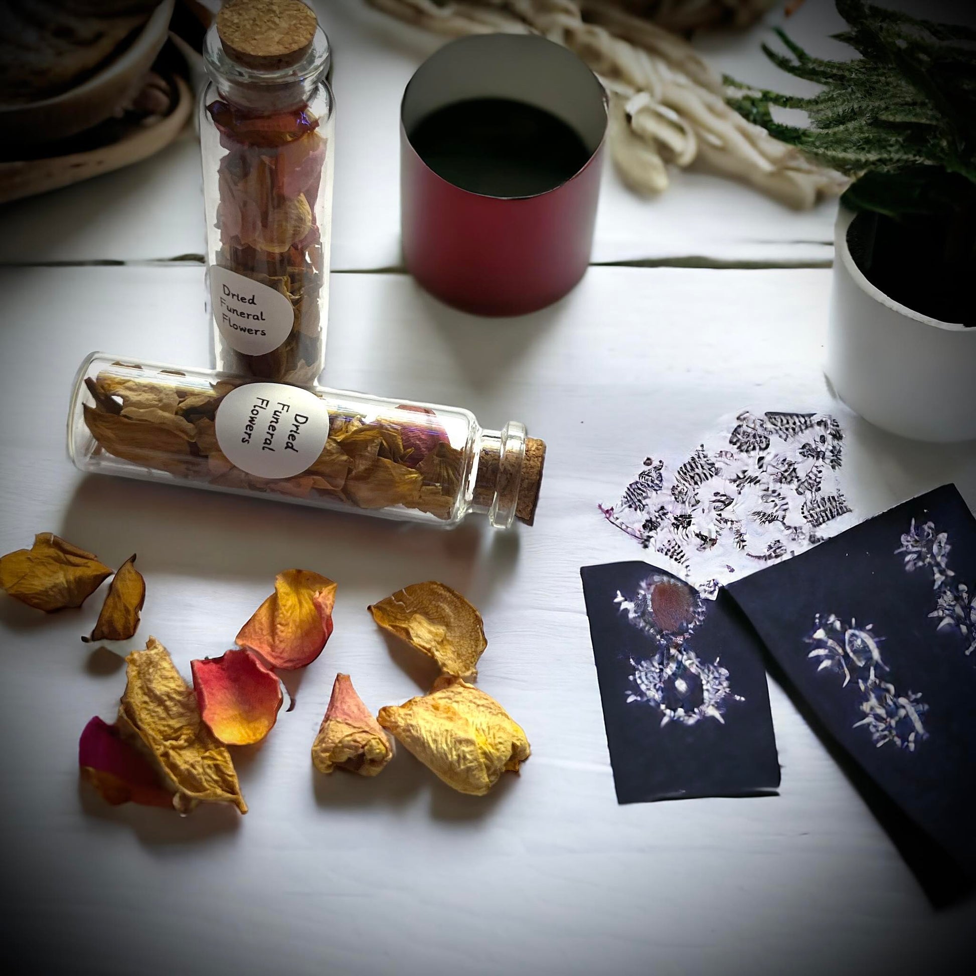 Dried Funeral Flowers Naturally Collected Specimen in Glass Vail Curiosity, Oddity, Apothecary, Unique Gift Idea, Witchcraft, Collectors