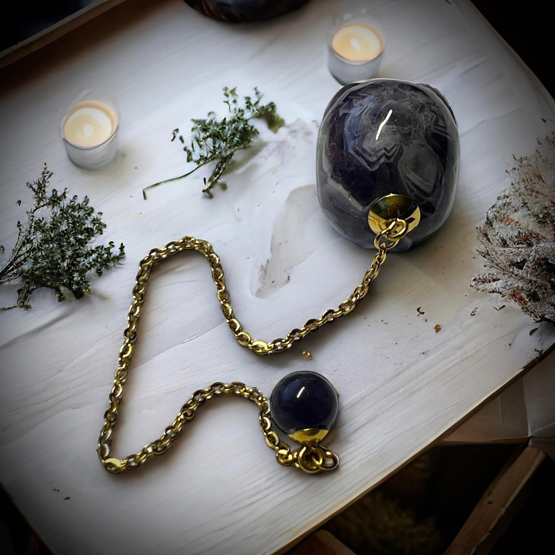 Gemstone Pendulum Skull Amethyst Curiosity, Oddity, Spells, Unique Gift Idea, Witchcraft, Rituals, Spirit Boards, Quartz