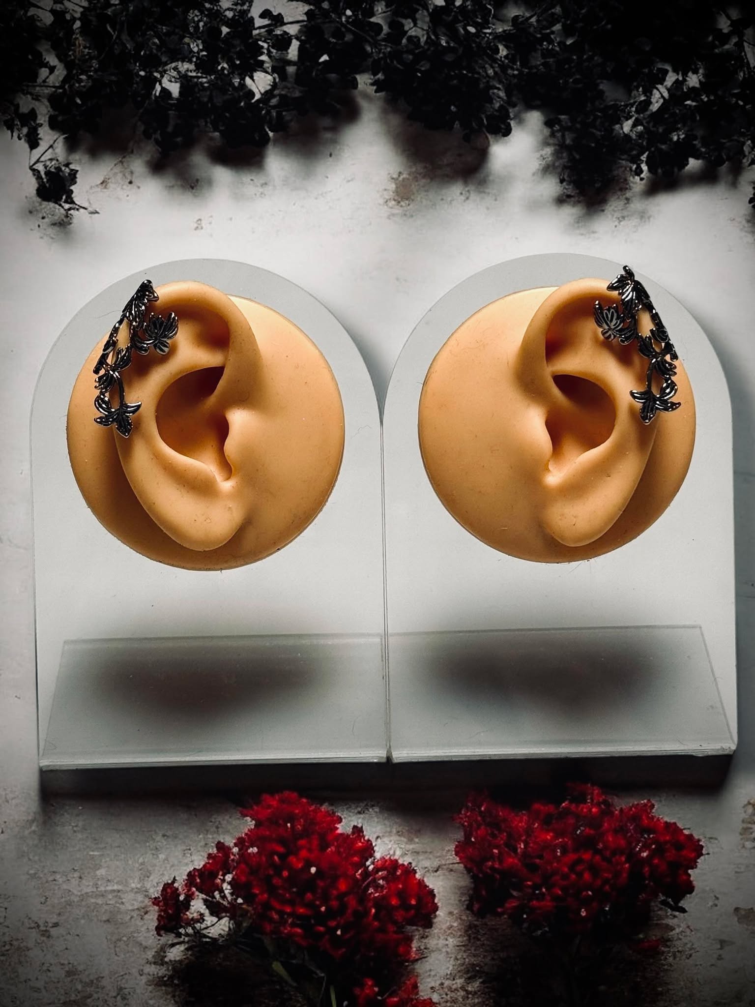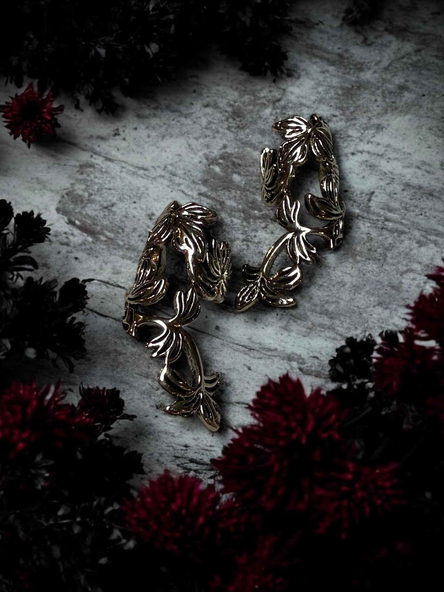 Gold or Silver Flower Leaf No Piercing Earring Cuff Clip Halloween Gift Ideas Rock Style Oddity Edgy Alternative Emo Costume Witch Punk Rock