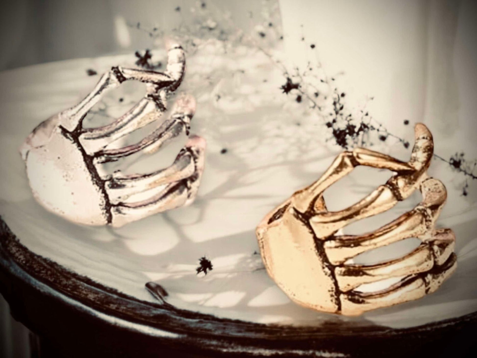 Gold or Silver Skeleton Hand No Piercing Ear Cuff Clip Halloween Gift Ideas Rock Style Oddity Edgy Alternative Emo Costume Witch Punk Rock