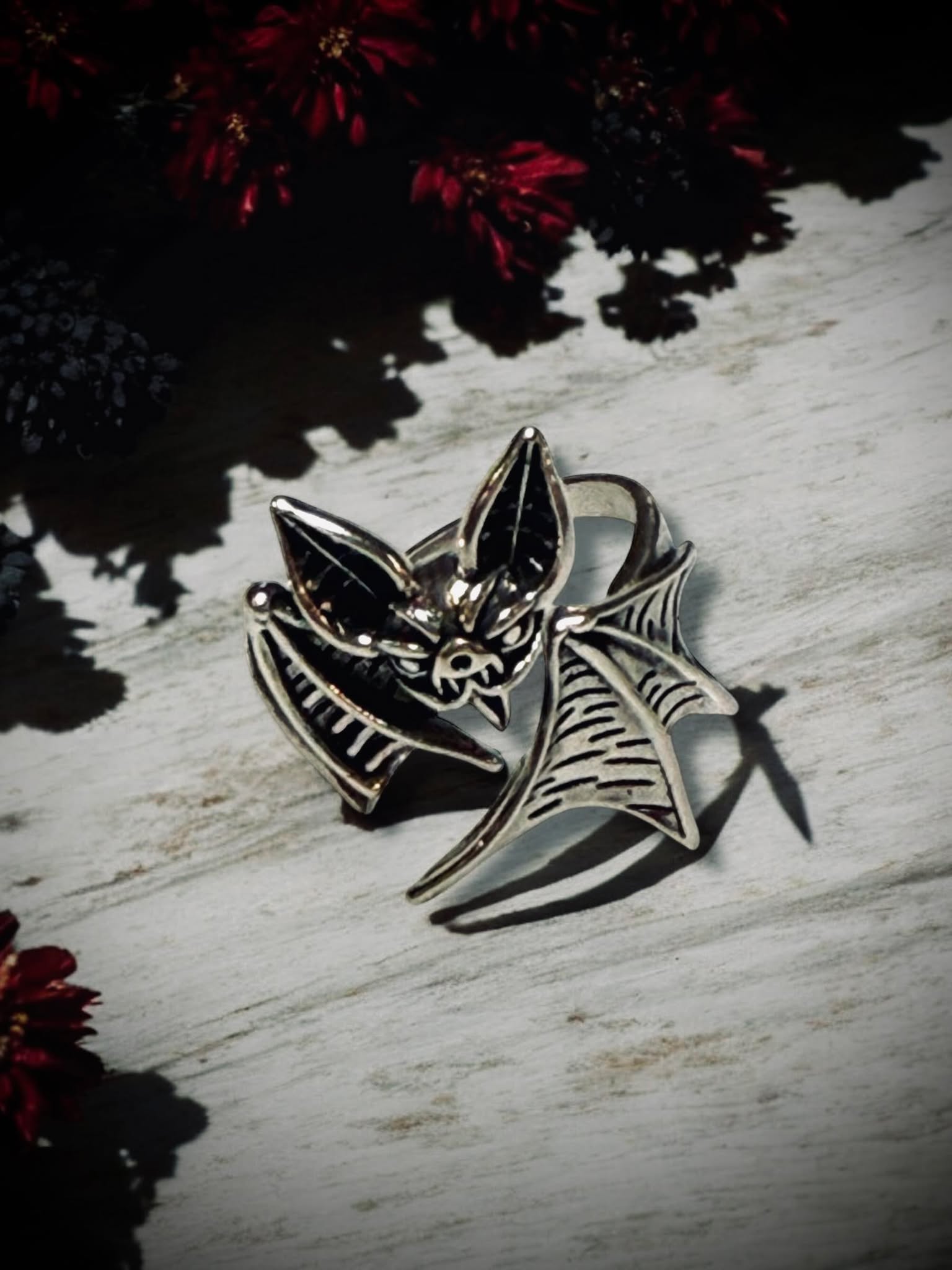 Gothic Bat Ring Adjustable Punk Rock Gift Idea Jewelry Accessory Copper Alloy Oddity Jewelry Cosplay Vampire Devil Oddities Wiccan Witch