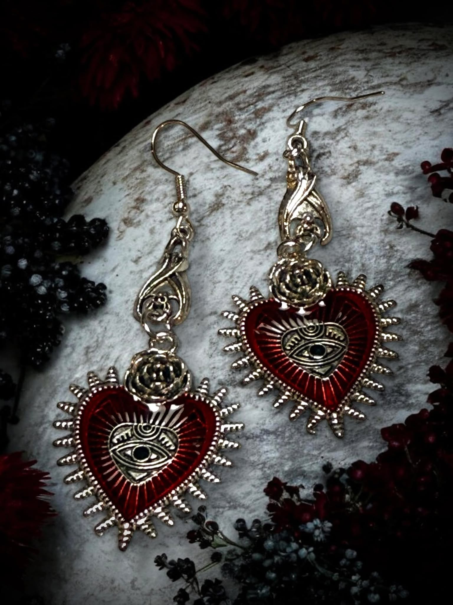 Get ready to elevate your earring game with our Gothic Red Heart Shaped Rose Bat Sliver Dangle Earrings! Channel your inner punk rock witch with these unique, spooky yet stylish accessories. These earrings feature an intricately designed rose in the shape of a heart, perfect for adding some edge to your outfit. Not only are they a fashion statement, but they also reflect your one-of-a-kind personality. Weighing in at 1.76 oz (50 g). Get ready to turn heads and make a statement with these Oddity Jewelry Cosplay Dress Up Long Hanging earrings.