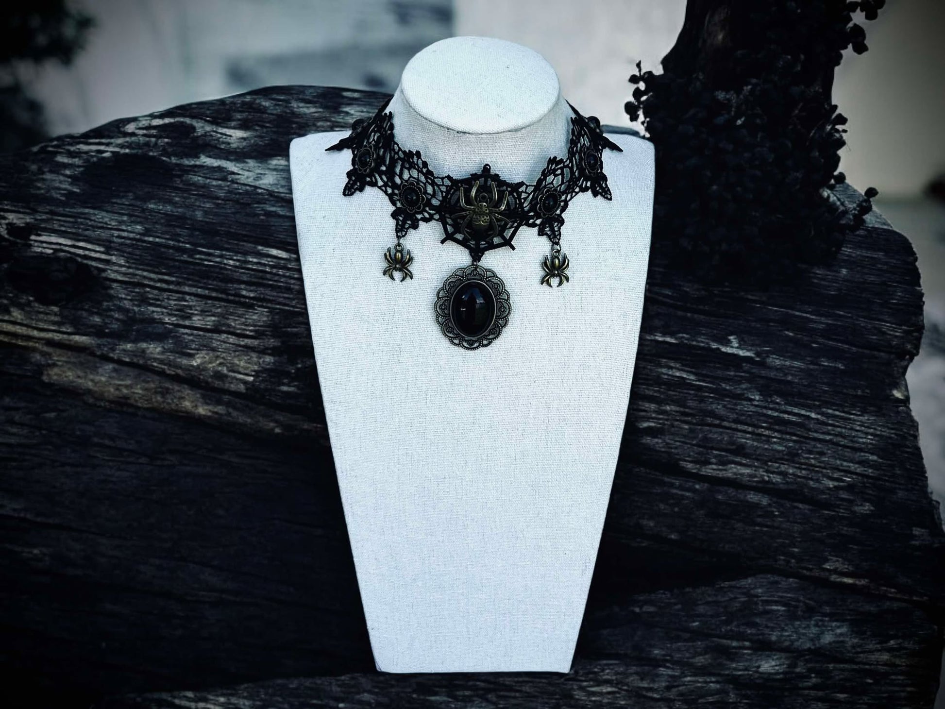Gothic Spiders Pendent Charms Choker Necklace Black Gift Idea Oddity Jewelry Gothic Halloween Costume Woman Fantasy Vampire Dress Up Punk
