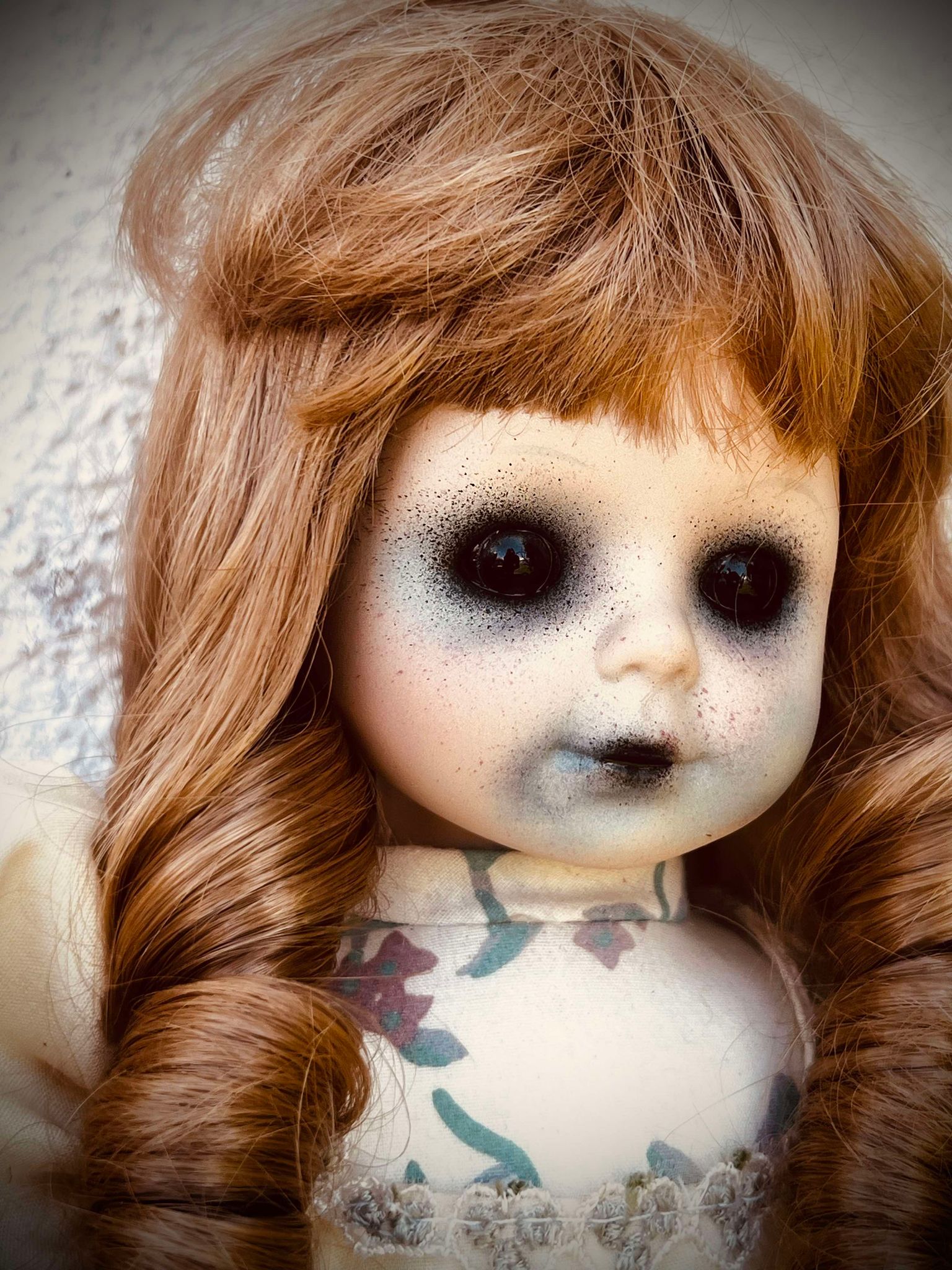 Take home this haunted host, crafted from a second-hand doll of porcelain head, hands and feet with a stuffed body. They may have their fair share of "flaws," but that's part of their charmingly spooky story! (But, no promises on perfect condition here!)