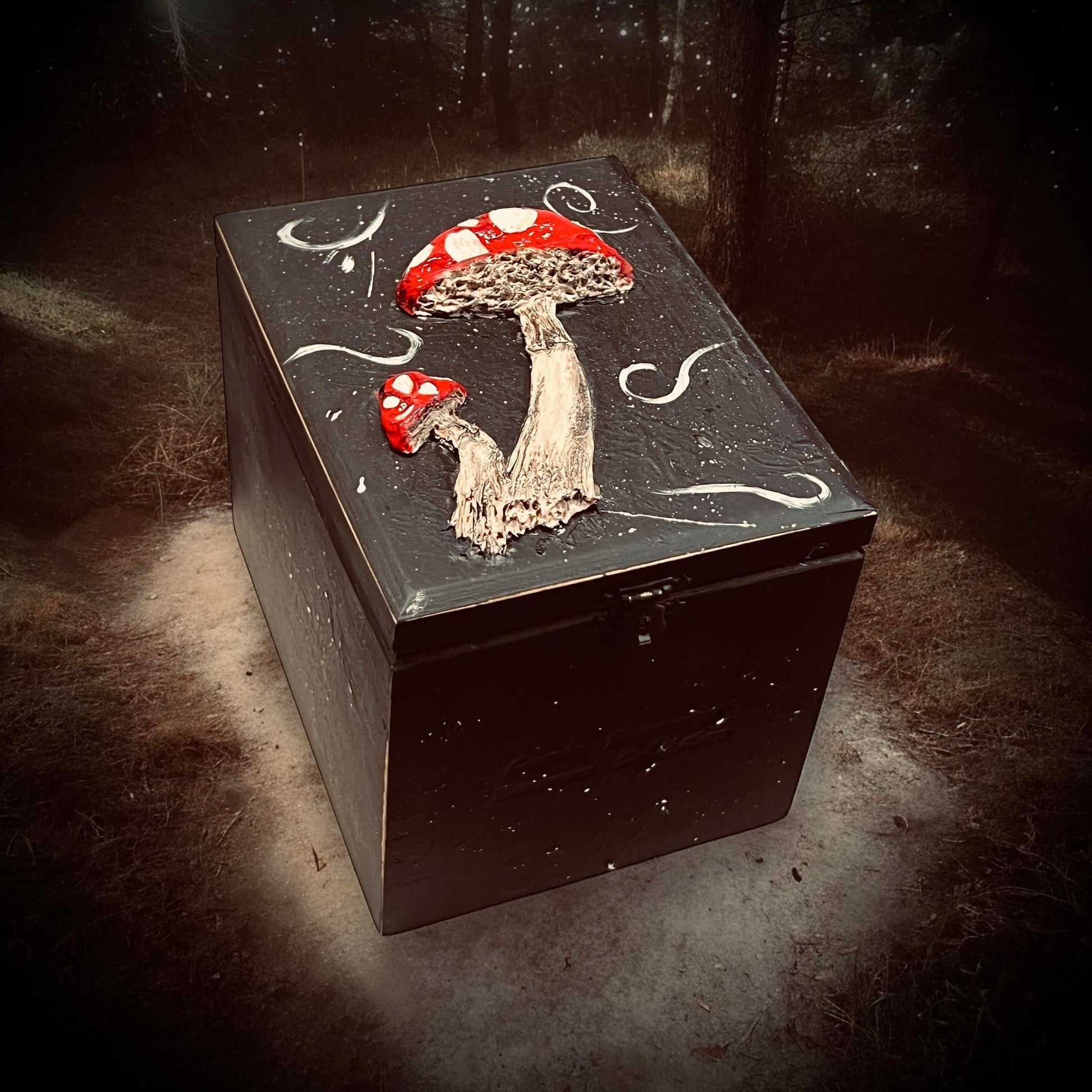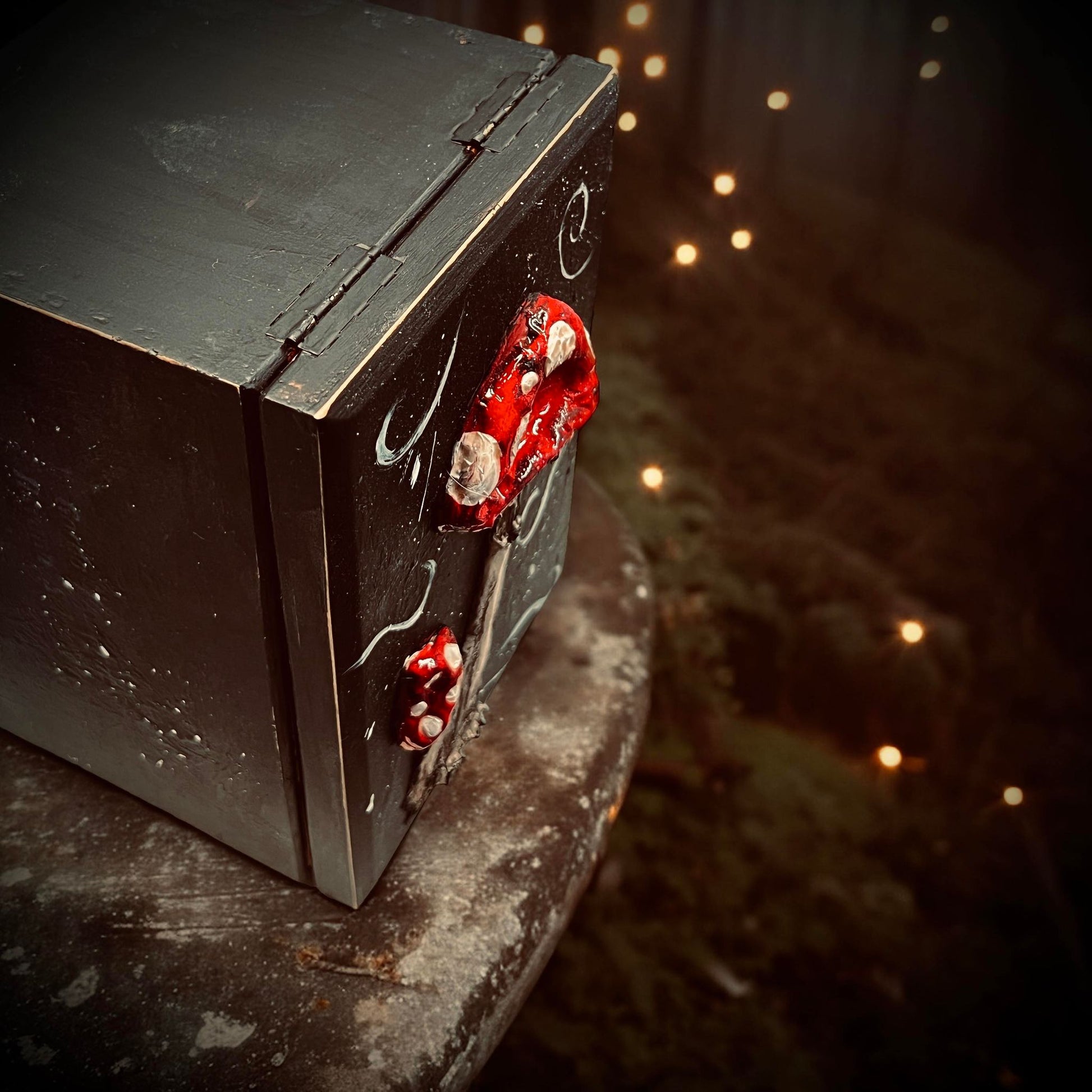 Mushroom Witch Wooden Box Trinket Oddity Box Clay Sculpture Curiosity, Oddity, Unique Gift Idea, Creepy Unusual Hand Crafted One of a Kind