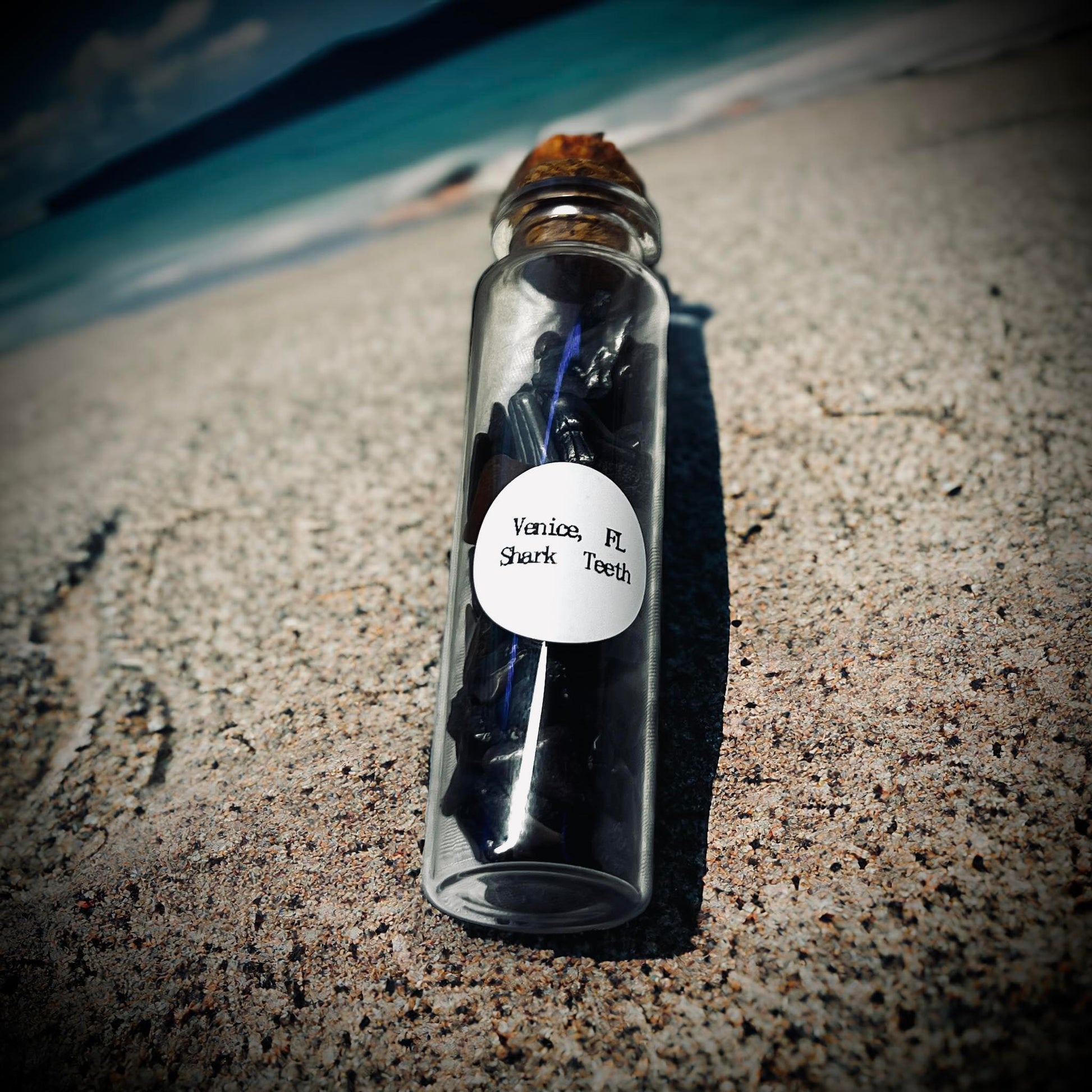 Naturally Collected Shark & Fossil Specimen in Glass Vail Curiosity, Oddity, Apothecary, Unique Gift Idea Shark Tooth Capital Beach FL