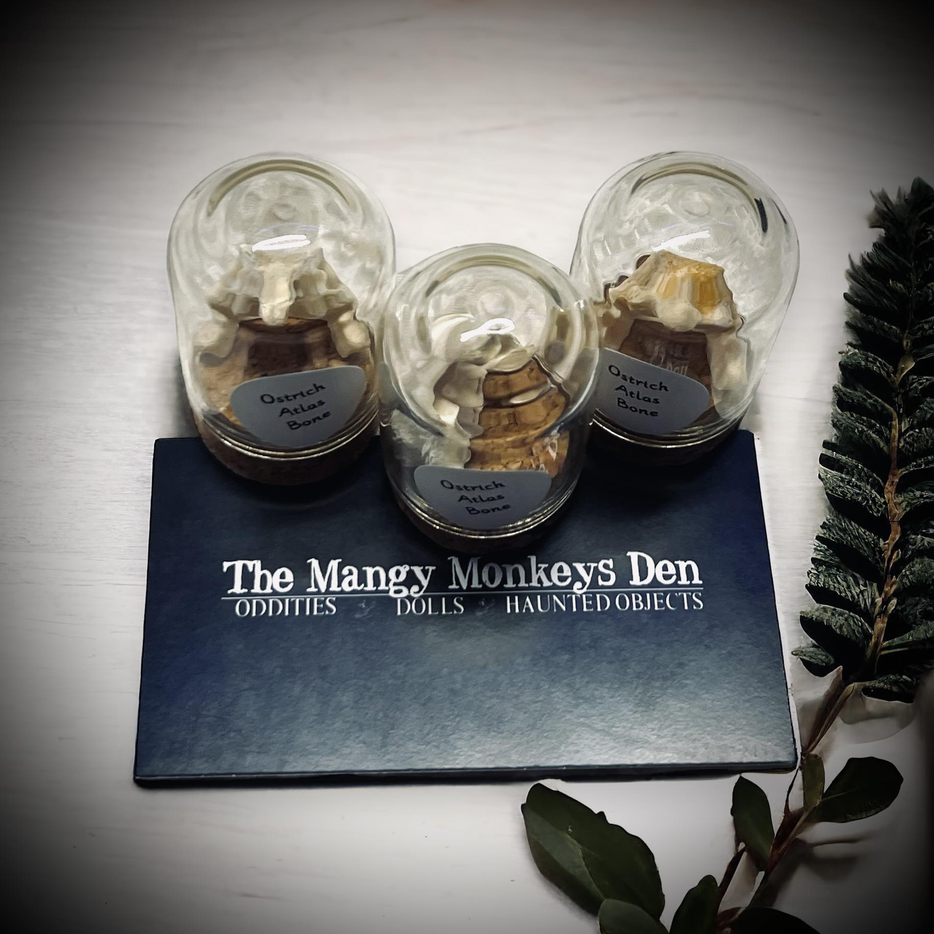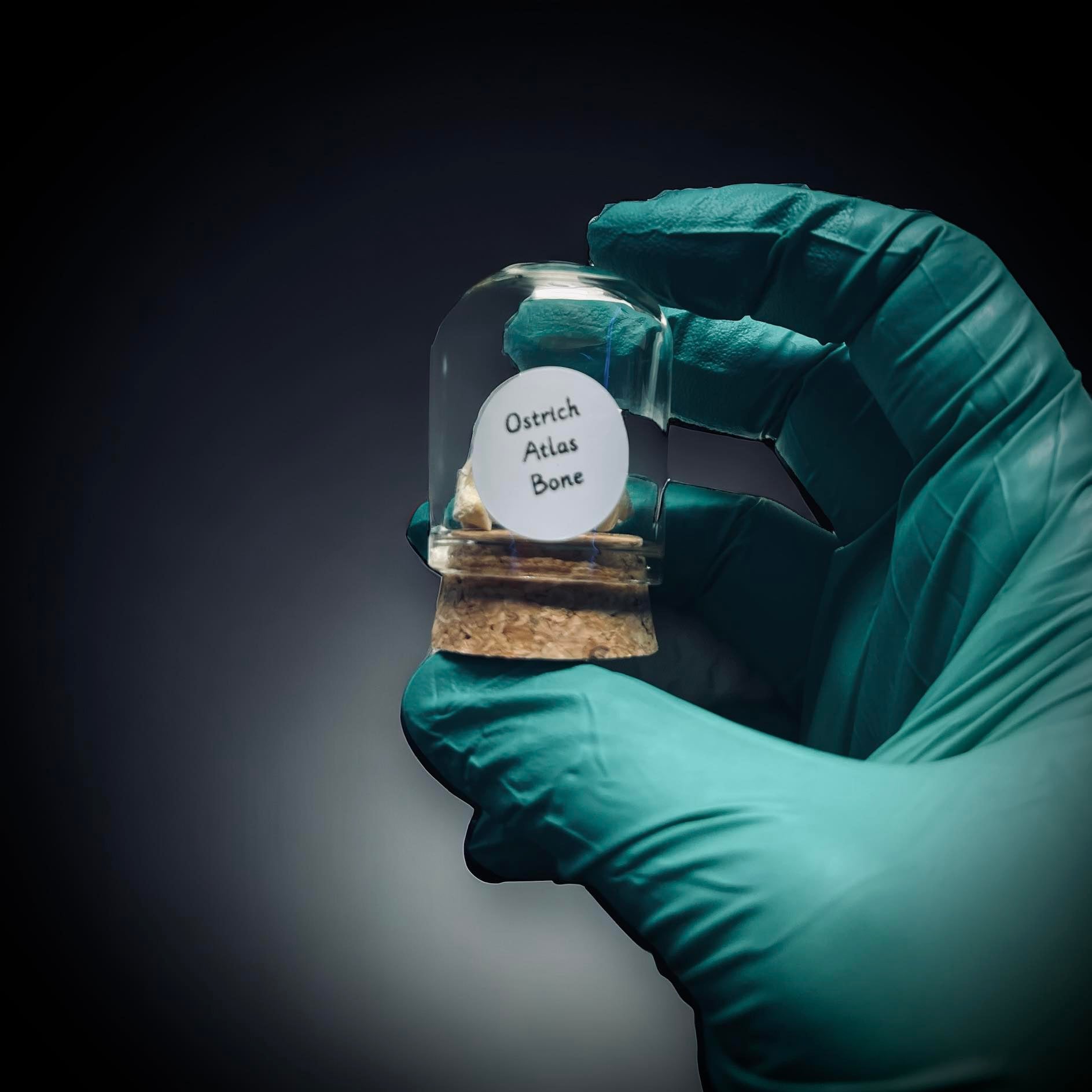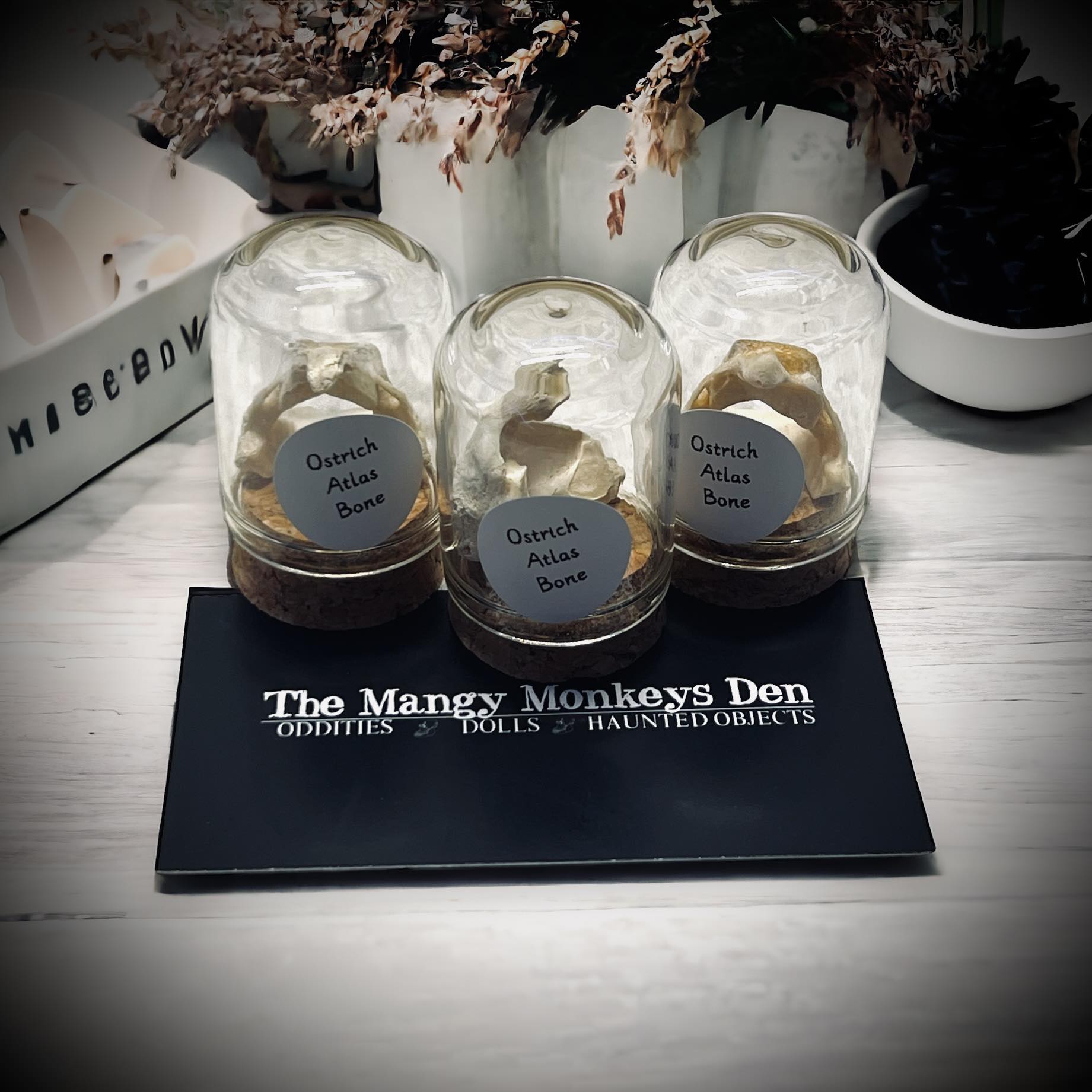 Ostrich Atlas Bone Specimen in Glass Vail Gothic Voodoo Witchcraft Curiosity, Oddity, Real Animal Bones, Apothecary, Unique Gift Idea