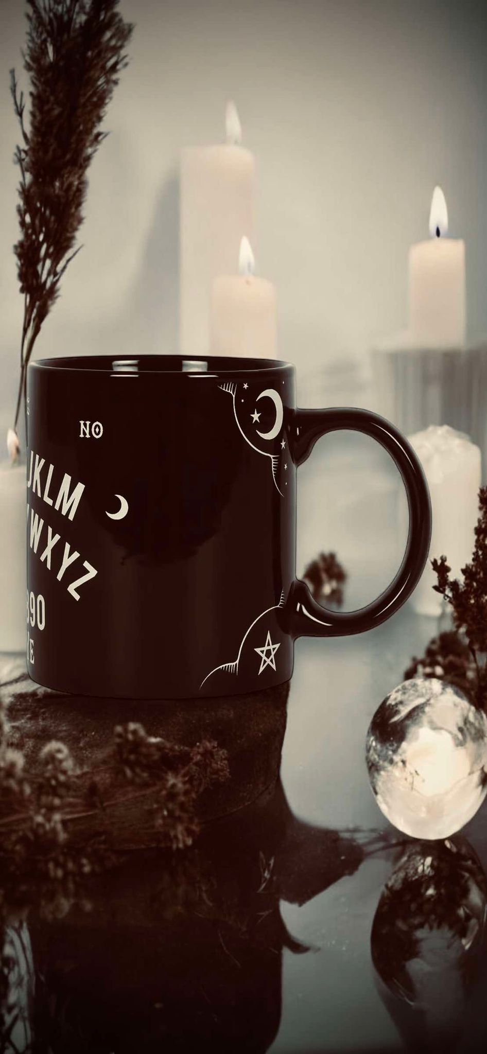 Ouija 12oz Coffee Mug Ceramic Black Spirit Board Oddities Gift Idea Halloween Decor Fall Witch Occult Spooky Mystic Paranormal Cup