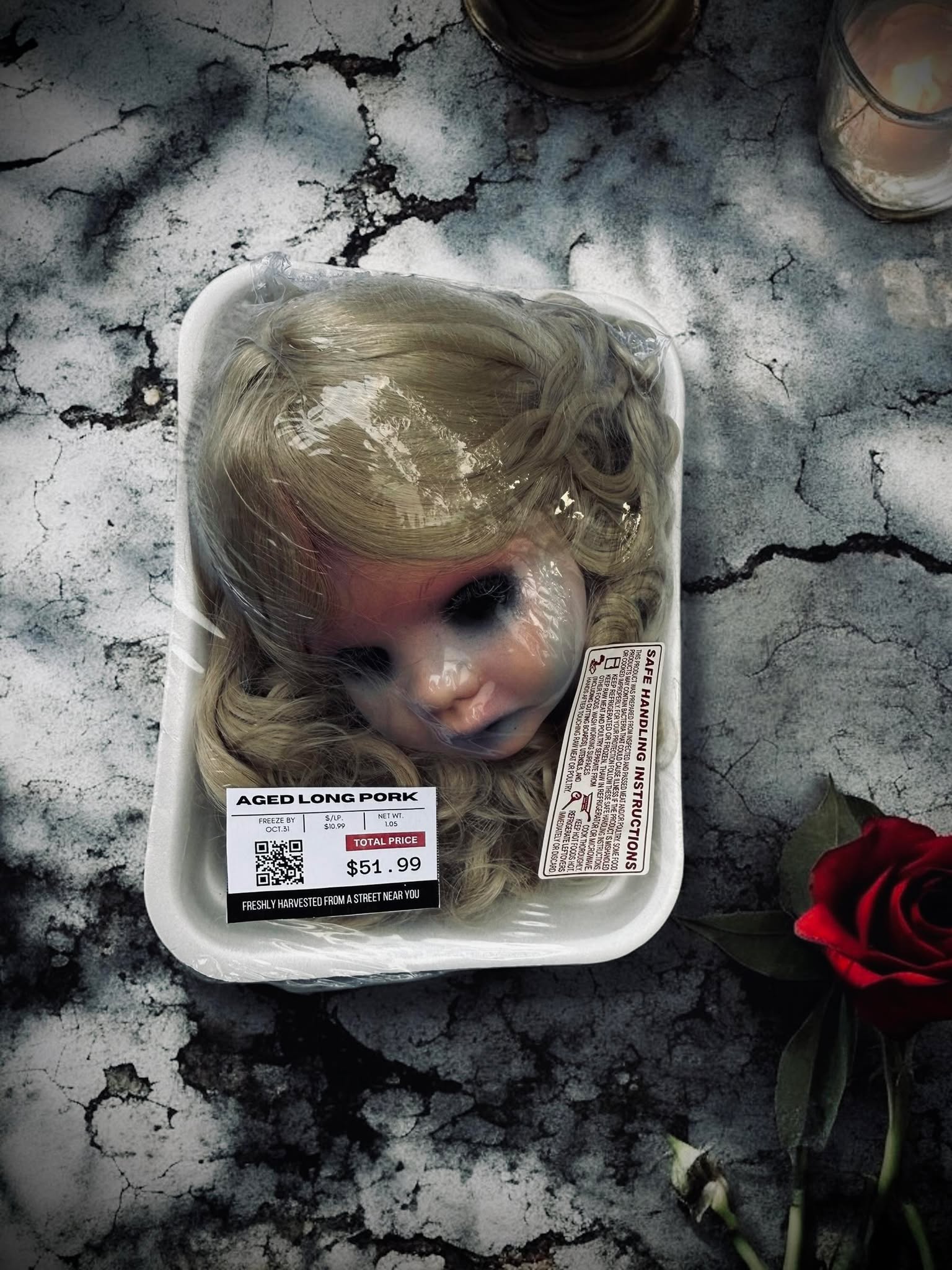 Packaged Meat Aged Long Pork Porcelain Doll Parts Butcher Gothic Voodoo Witchcraft Curiosity, Oddity, Unique Gift Idea Specimen 612 Head