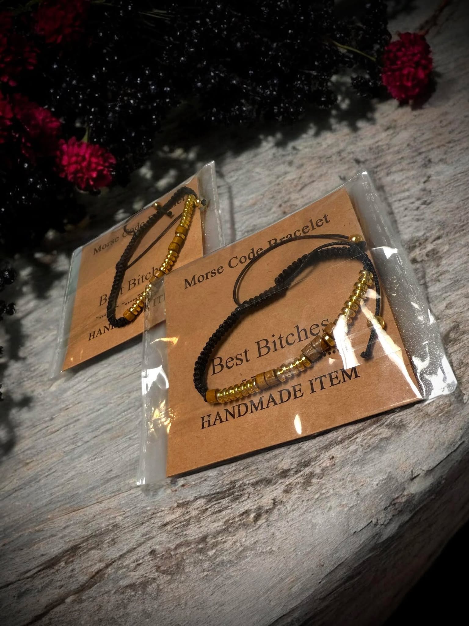 Pair of Best B*tches Handmade Wooden Beaded Morse Code Bracelets Adjustable Bracelet Gift Idea Oddity Jewelry Best Friends Long Distant #545