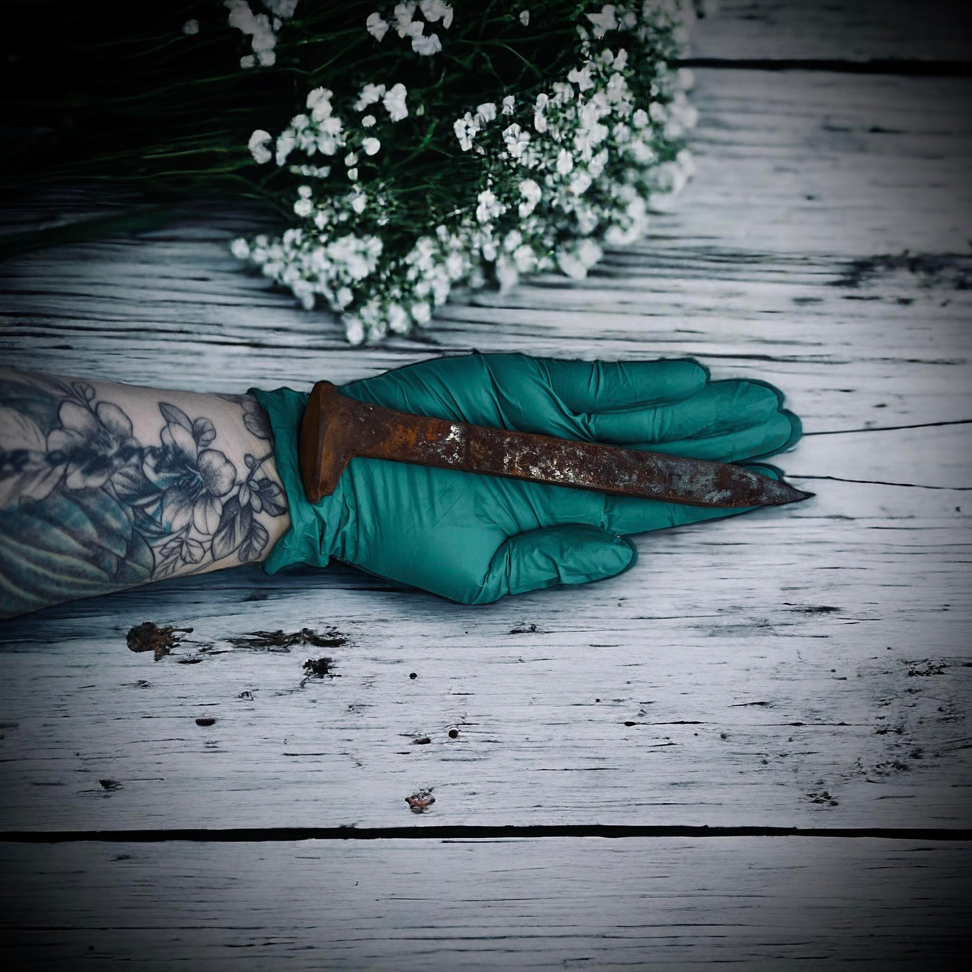 Enhance the potency of your magical spells with our authentic Railroad Spikes. Rooted in hoodoo tradition, these forged iron spikes hold ancient power, passed down through their use and rusted appearance. Each spike is carefully sourced for maximum effectiveness, making them an essential tool.