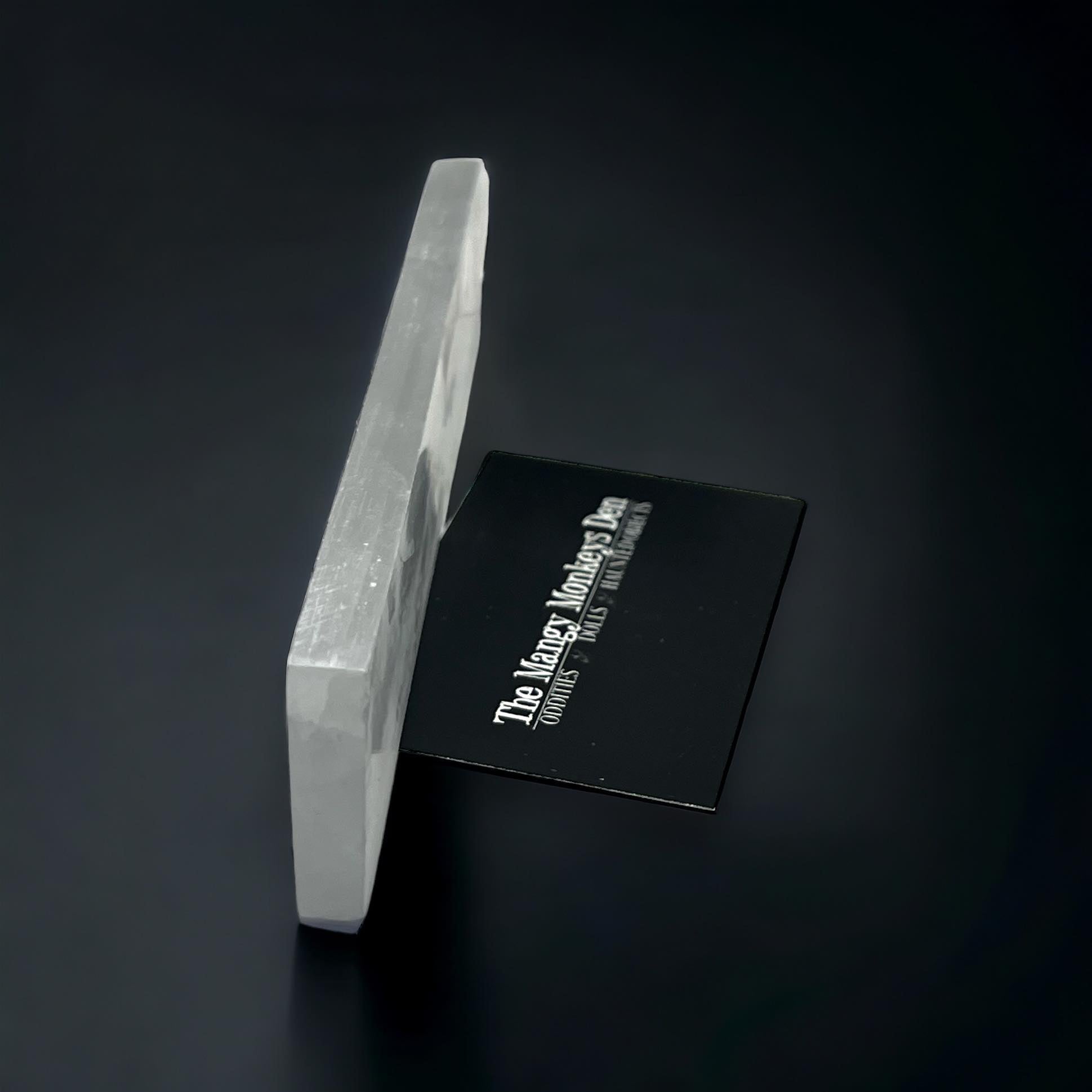 Boost the positive energy in your space with our Selenite Crystal Charging Plate. Made from natural Selenite, it may have markings, cracks, or uneven edges, but this only adds to its unique beauty. Recharge your crystals and enhance your well-being with this perfect addition to your home.