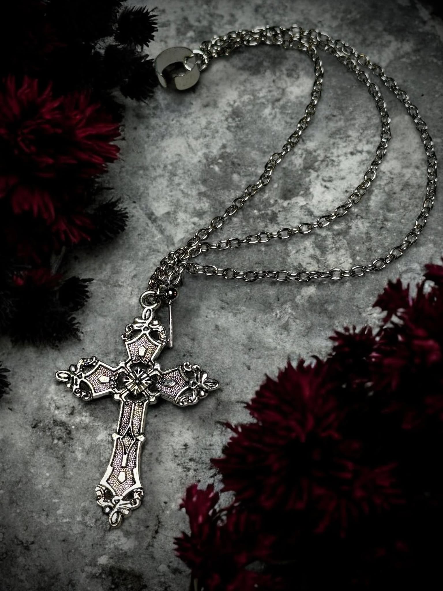 Embrace your enigmatic side with this Gothic Cross Clip Drop Earring. This dangling accessory, a work of art in their own right, seamlessly fuse classic gothic elements with a contemporary and fashion-forward mindset. They boldly express individuality and serve as the perfect adornment for the daring. Discover more about this unique piece, weighing in at 1.41 oz (40 g).