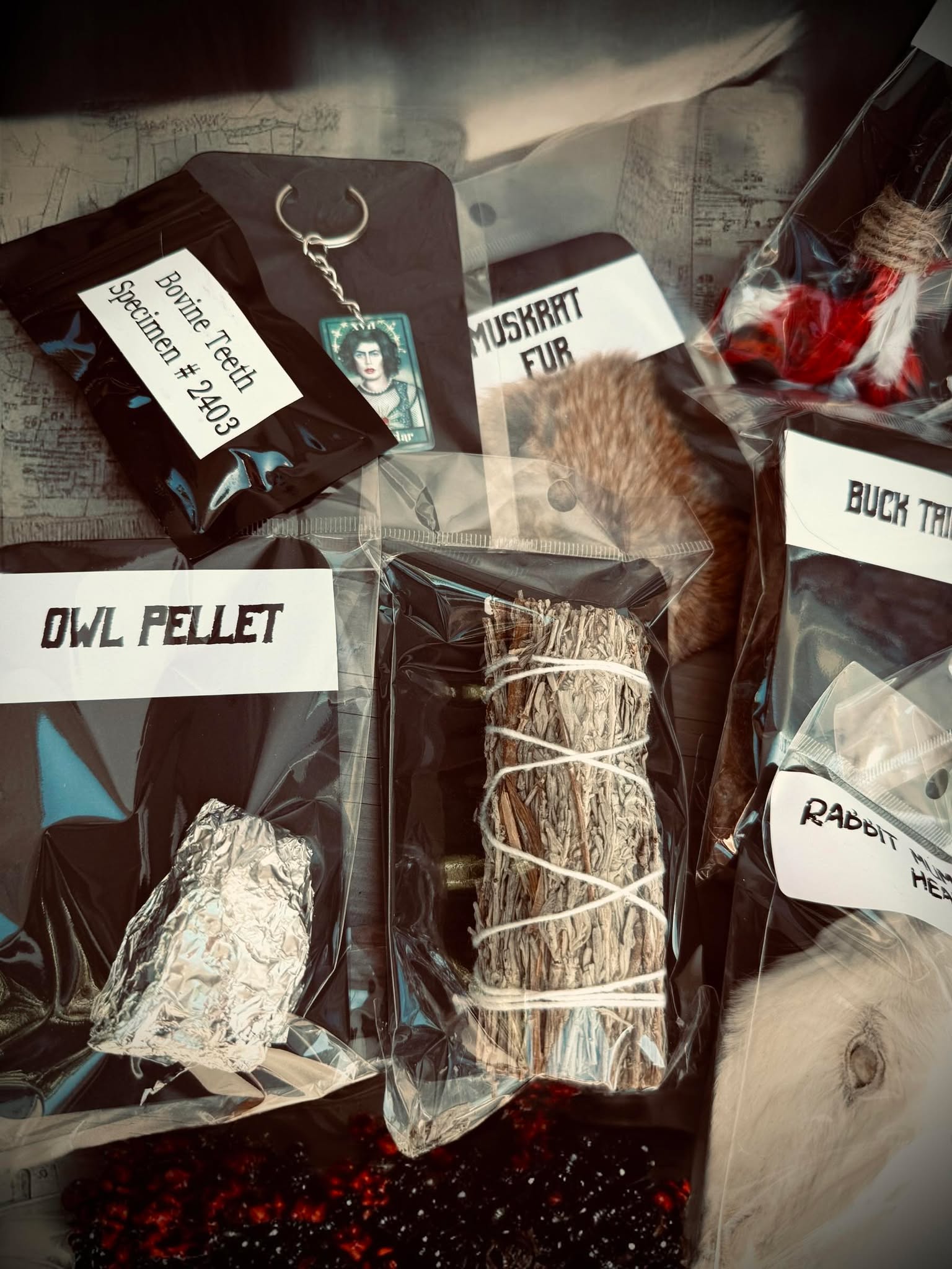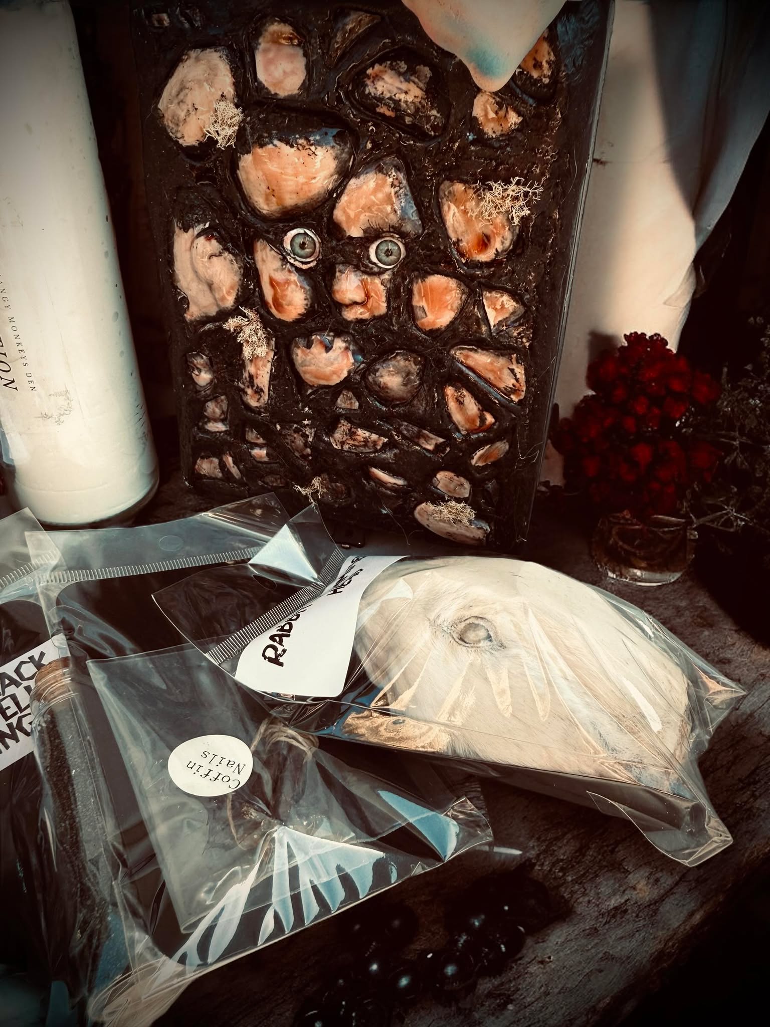 👻 One Mummified rabbits head - That's right, rabbits aren't just cute, they're also great omens of luck, good fortune, and even creativity and growth! And don't forget their gentle and sensitive nature and symbols of new beginnings.