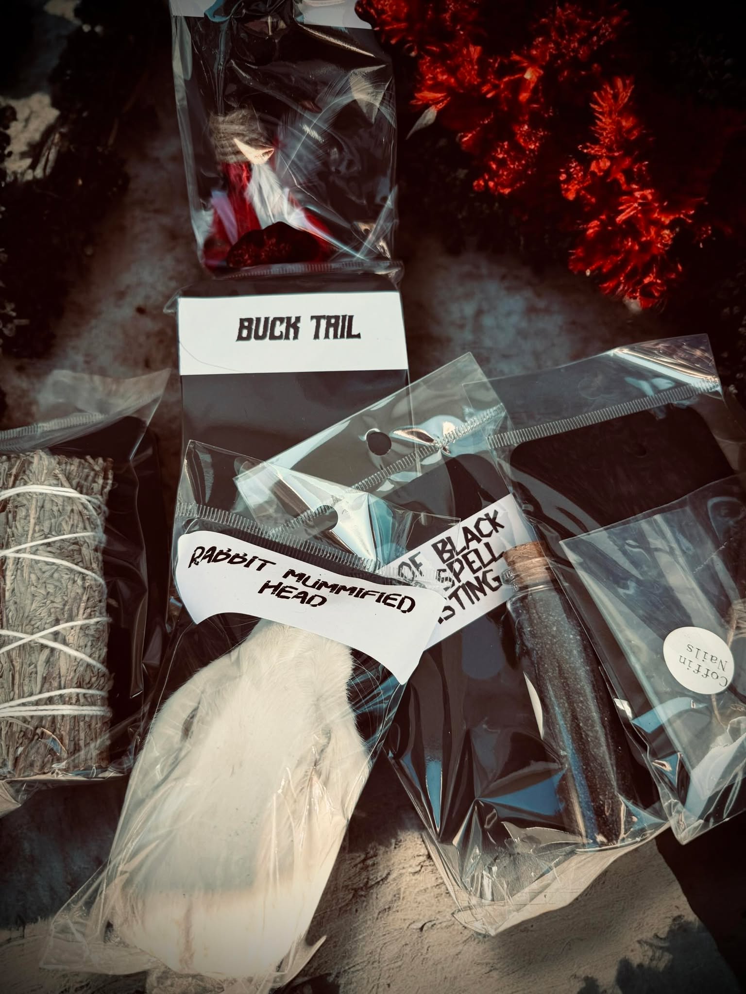 👻 One vial of dried funeral flowers - Enhance your spiritual practice with the Magical Uses of Dried Flowers. Burn them as incense for positive energy, use as altar decor for a magical ambiance, or create charm bags and spell jars for focused intentions.