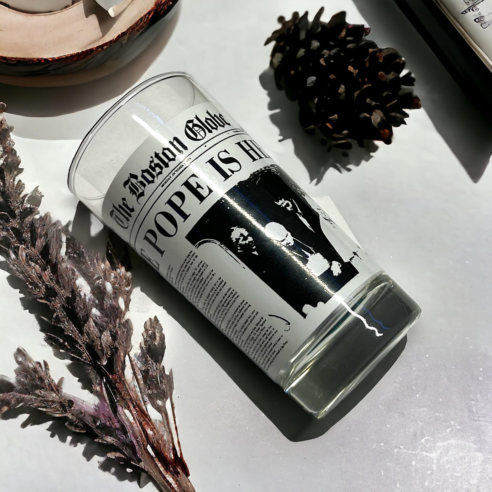 Vintage 1979 The Boston Globe The Pope Is Here Glass Drinking Graphic Newspaper Tumbler Curiosity, Oddity, Unique Gift Idea Religious